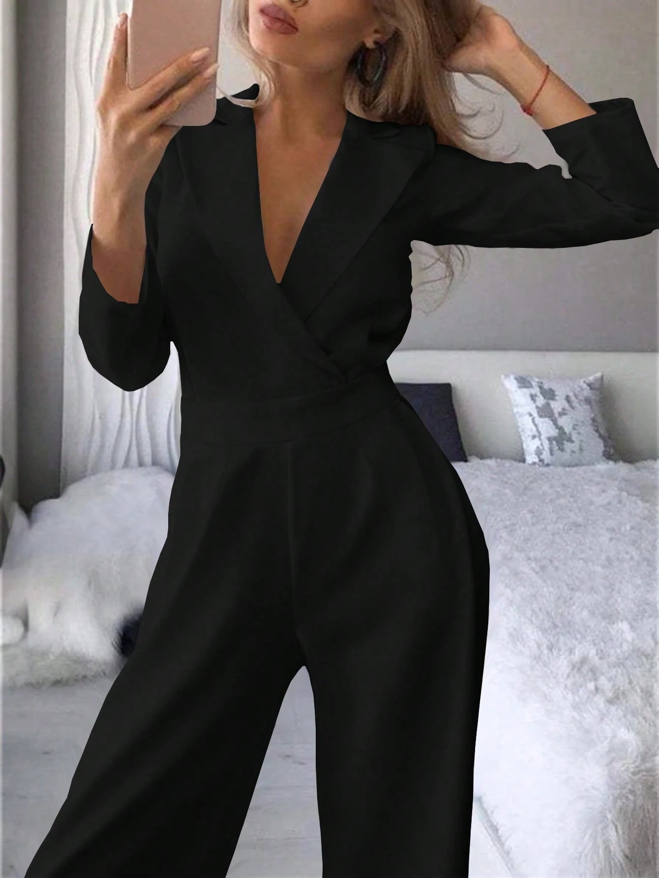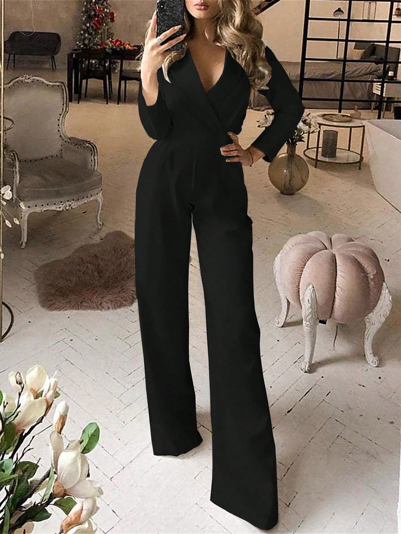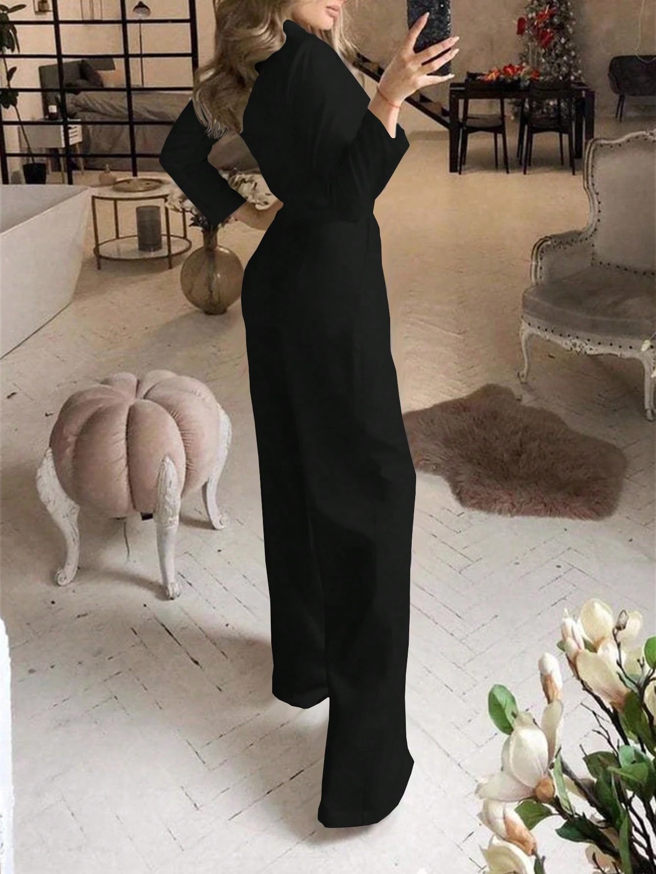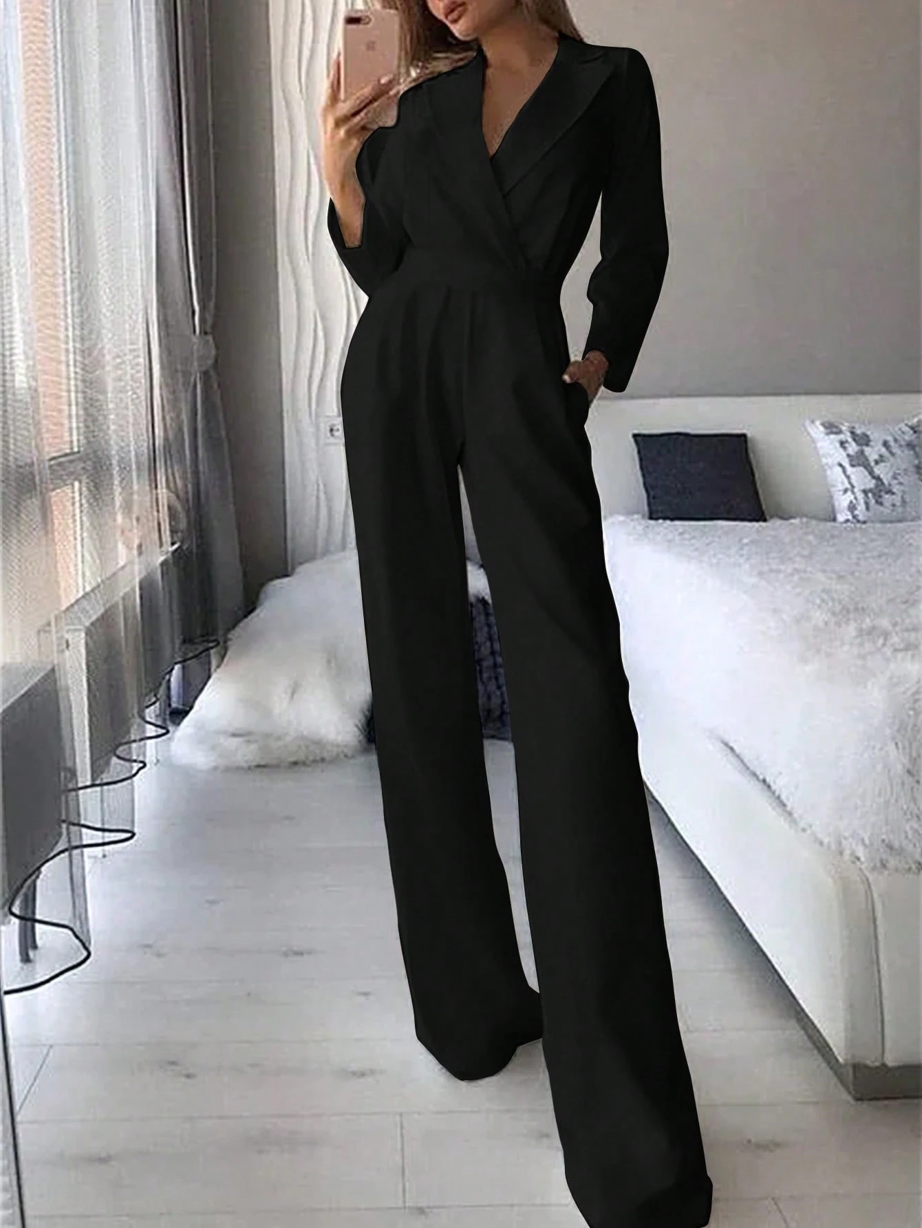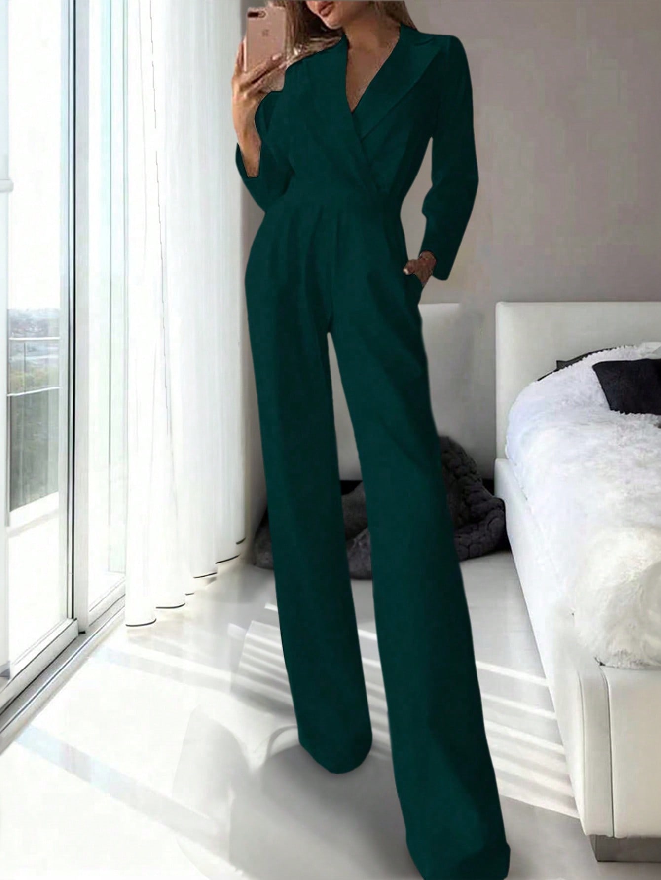 Be the first to review “Women's Solid Color Lapel NeckLong Sleeve Pleated Pocket Casual Jumpsuit”