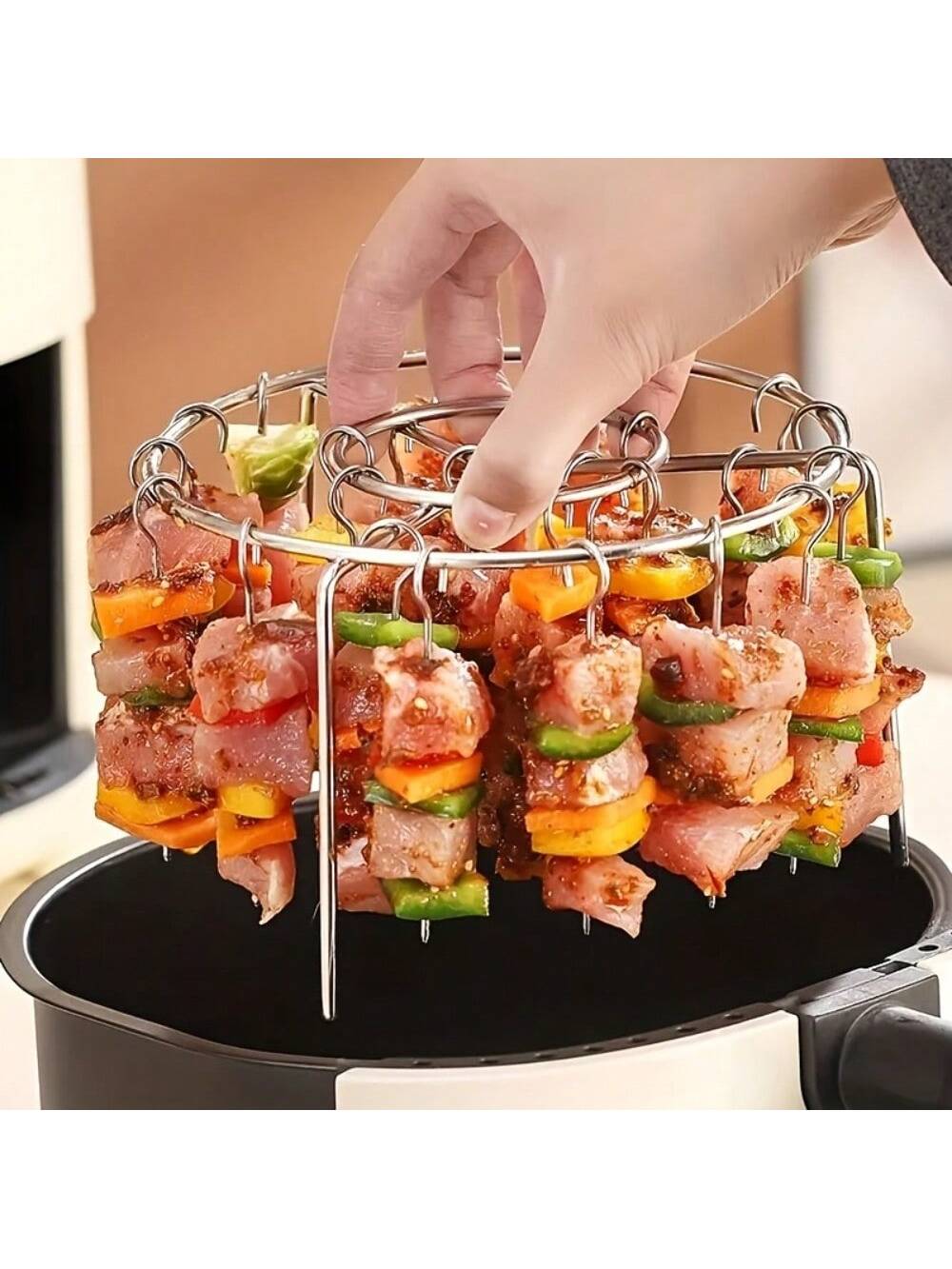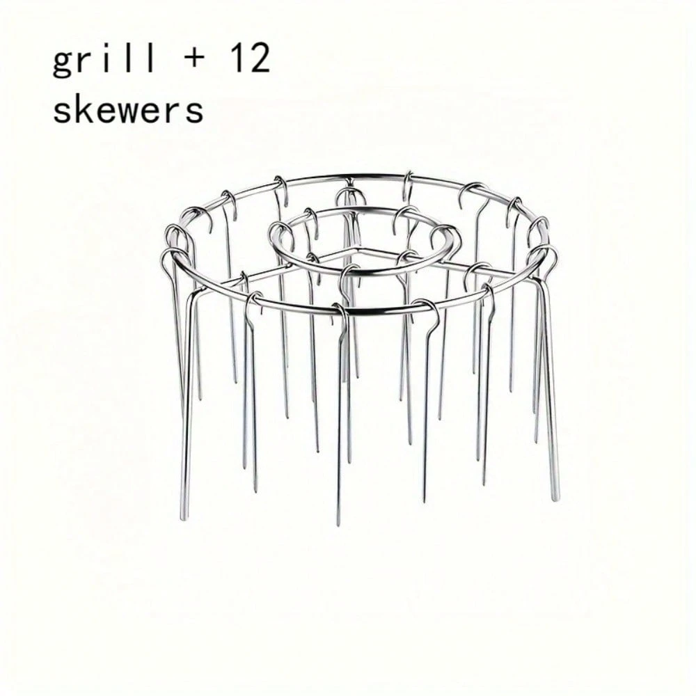 1 Set Stainless Steel Air Fryer Skewer Rack With 12 Skewers For DIY BBQ Meat Vegetables Fits 35qt To 55qt Air Fryer Oven Pressure Cooker No Flip Deep Fryer Accessories, Air Fryer Accessories, Kitchen Organization, Compact Design, Durable Construction, Coo