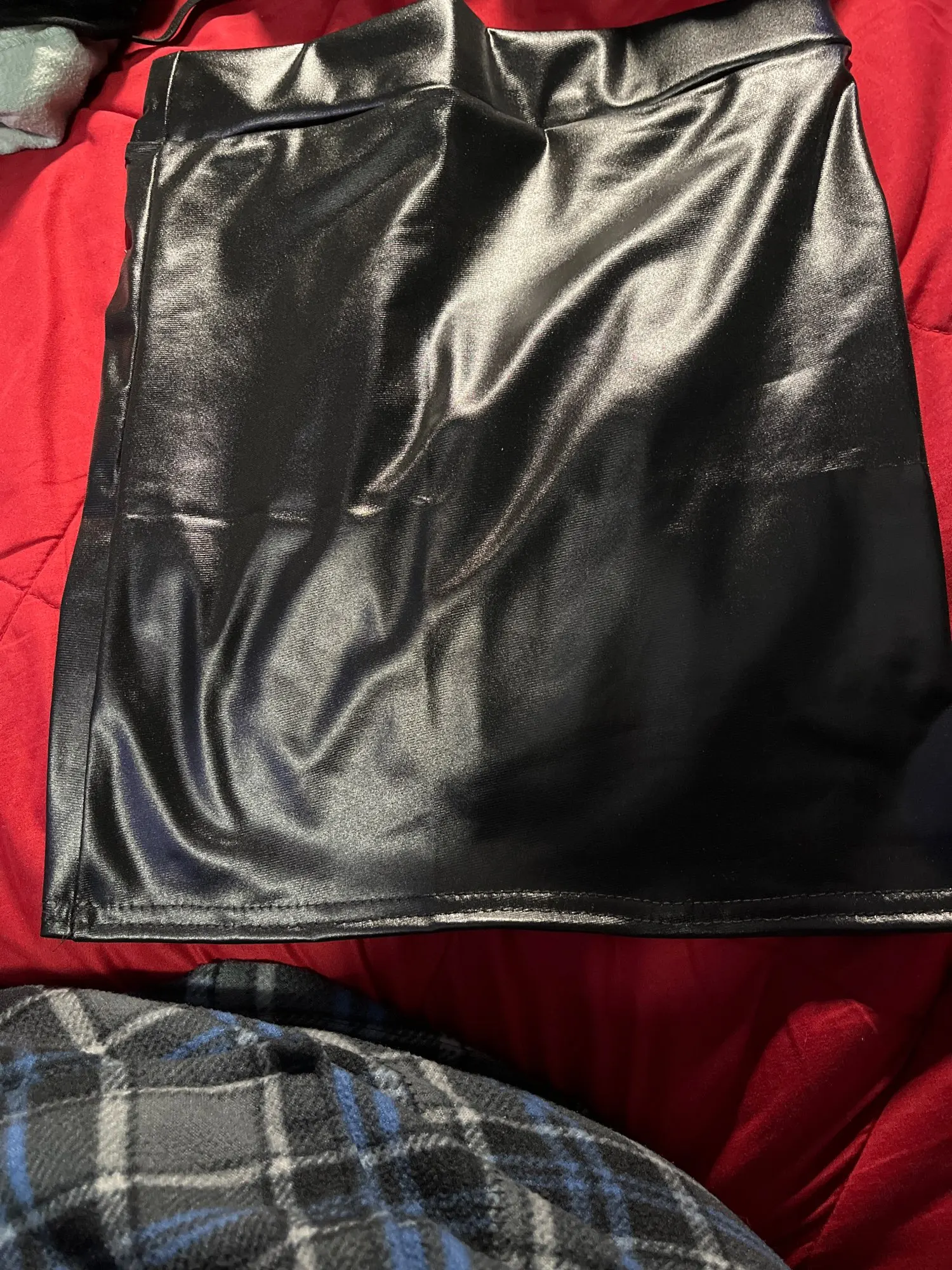 This skirt is so cute and fits me perfectly. Not leather but looks like it