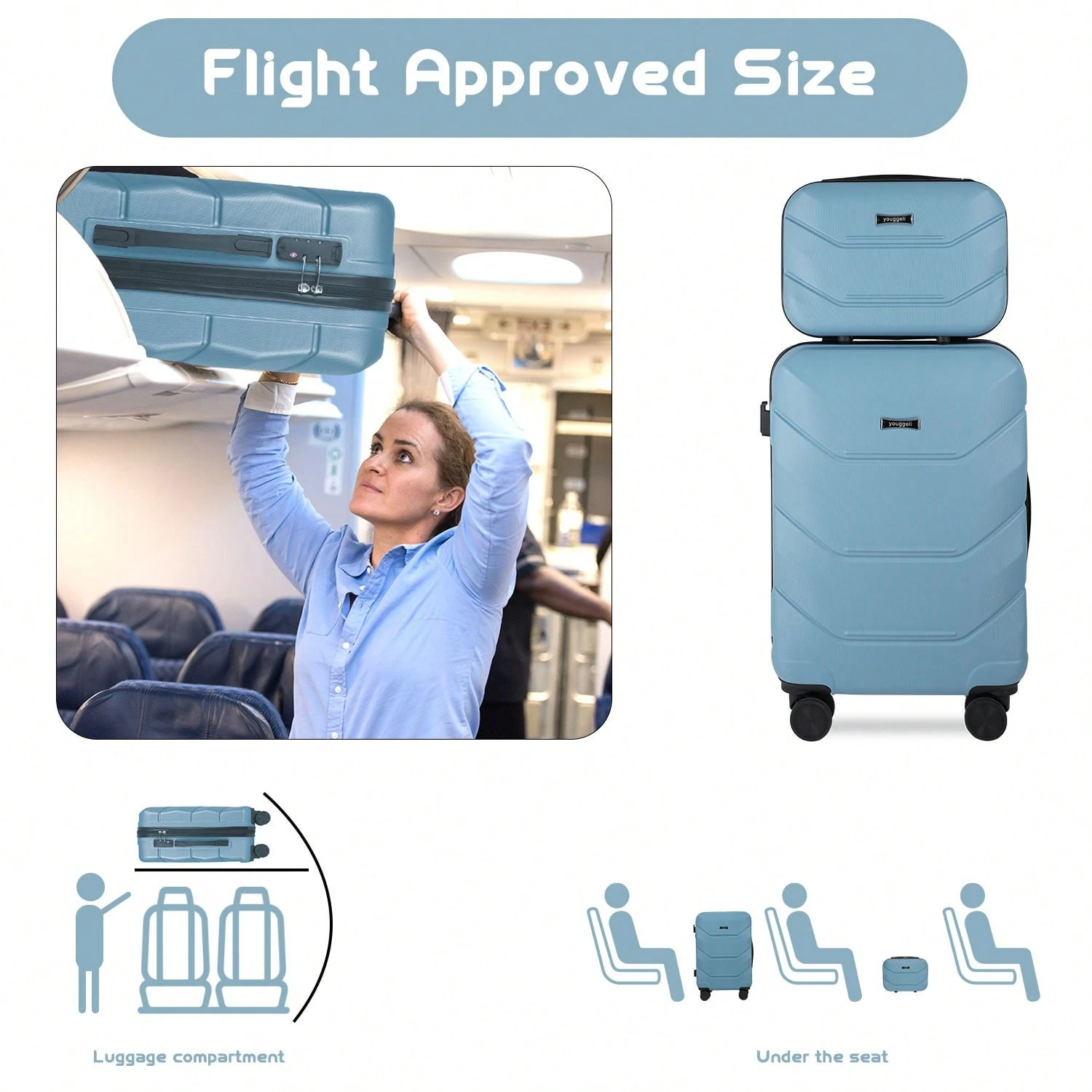 Be the first to review “YOUGGELI 2 Piece Carry On Luggage Set, Airline Approved 20 Inch Luggage With Cosmetic Case HardShell Suitcase With Spinner Wheels, Lightweight Durable Hardside Suitcases Set”