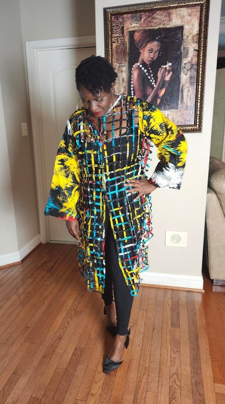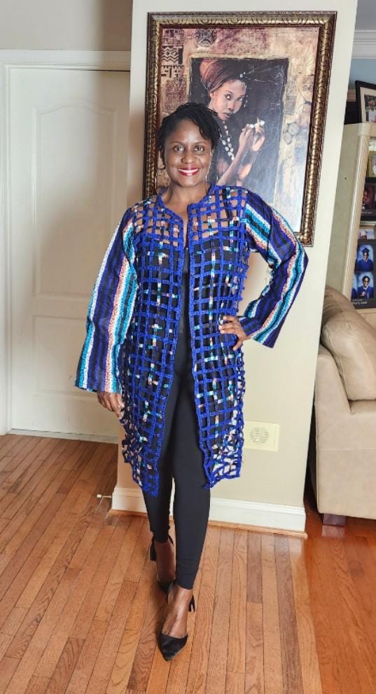 This netted duster exceeded my expectations! It is beautiful. It matches the description and the quality is exceptional! It arrived on time. I cannot wait to wear it for our church’s Black History Month celebration. I will definitely order from this vendor again.