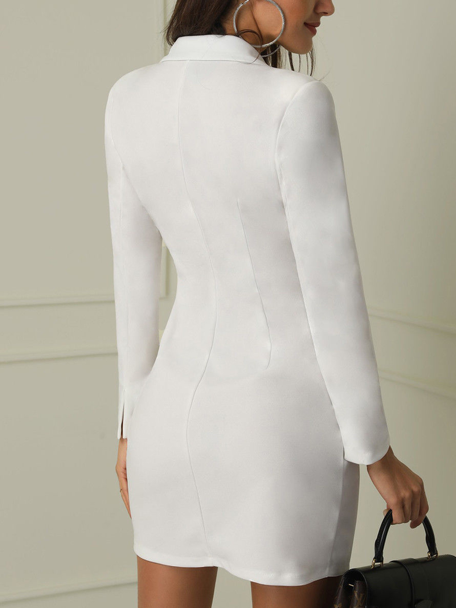 Women Formal Long Sleeve Blazer Solid Color V Neck Double Breasted Long Coats Lady Office OL Business Dresses – Player Fashions