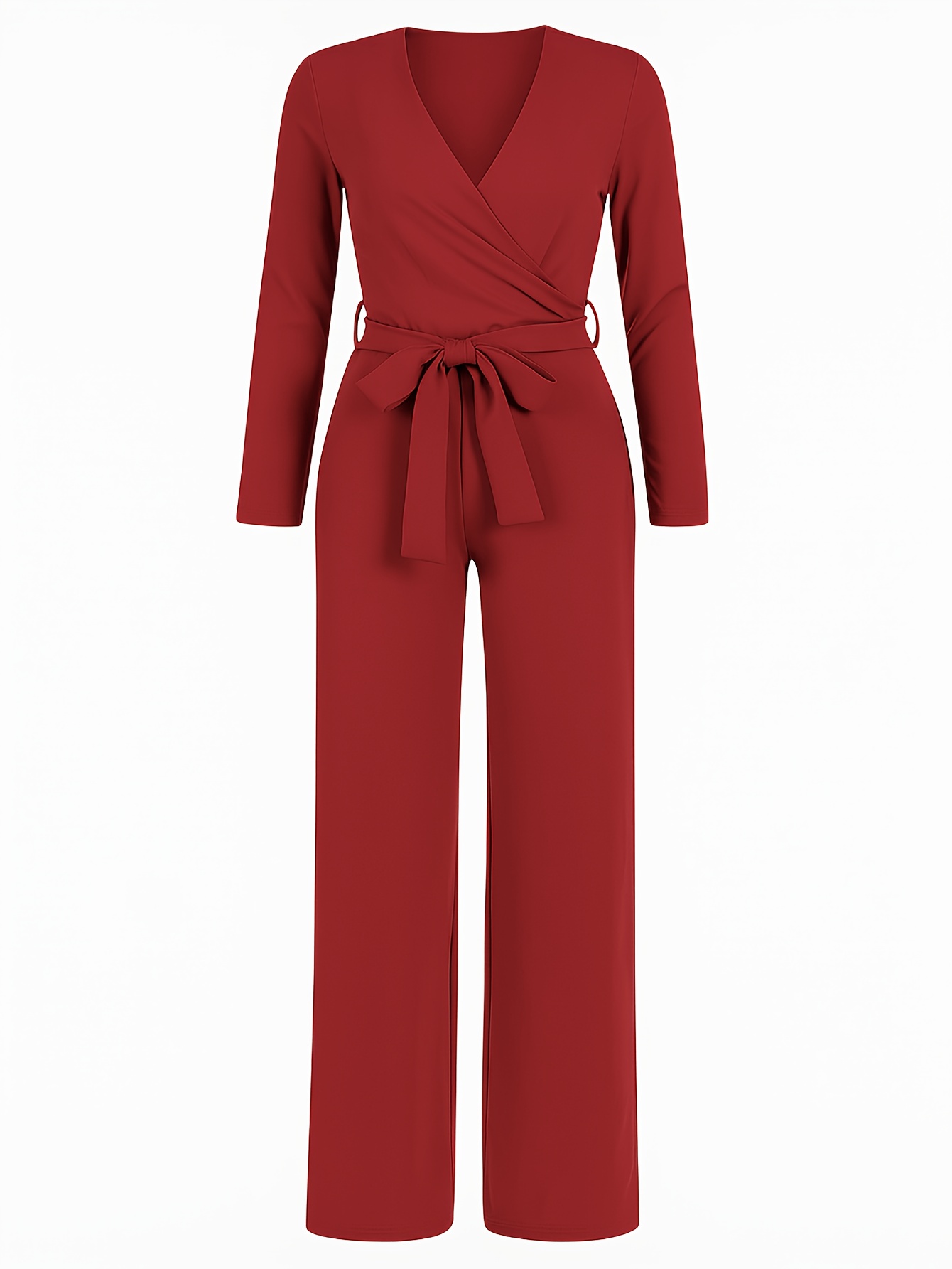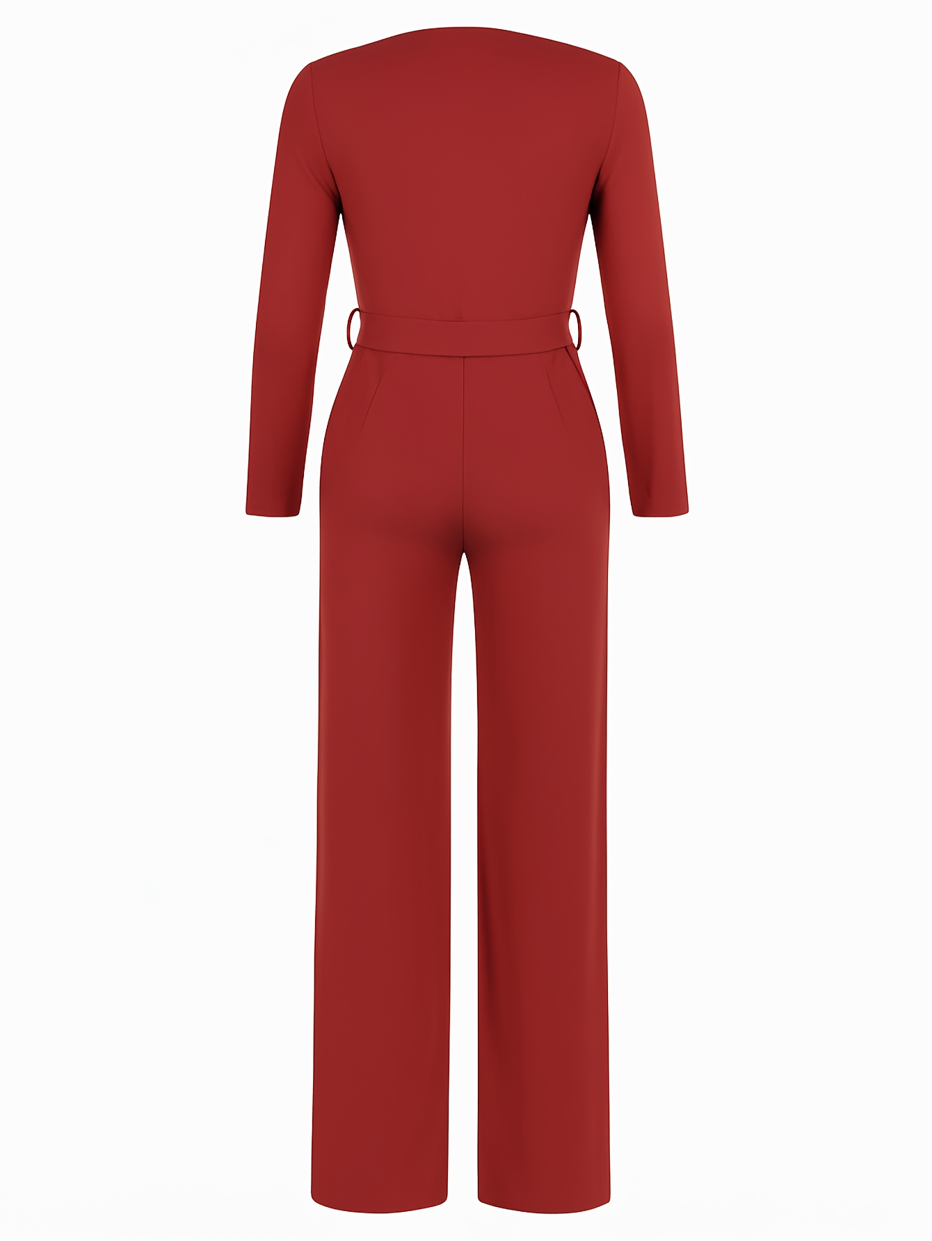 Women’S Fashion Slim Fit Elegant V-Neck Long Sleeve Skinny Jumpsuit High Waist Retro Loose Wide Leg Long Jumpsuit – Playerfashions